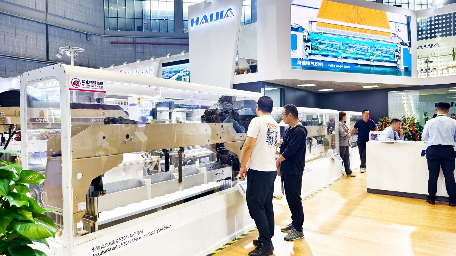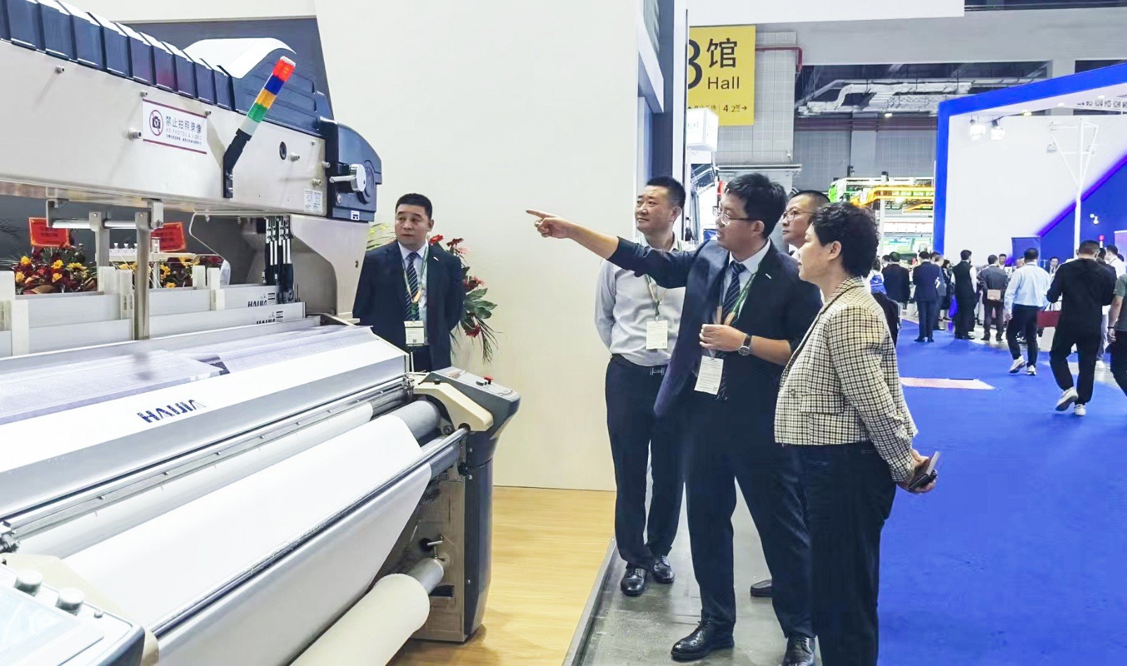 海佳噴氣織機(jī)也進(jìn)行了全面創(chuàng)新升級,本次展出的HA-9030N系列噴氣織機(jī)長期運轉(zhuǎn)更加可靠性,高速運轉(zhuǎn)同時更加節(jié)能,能滿足各種高品質(zhì)織造,品種適應(yīng)性更強,現(xiàn)場吸引海內(nèi)外諸多客戶。