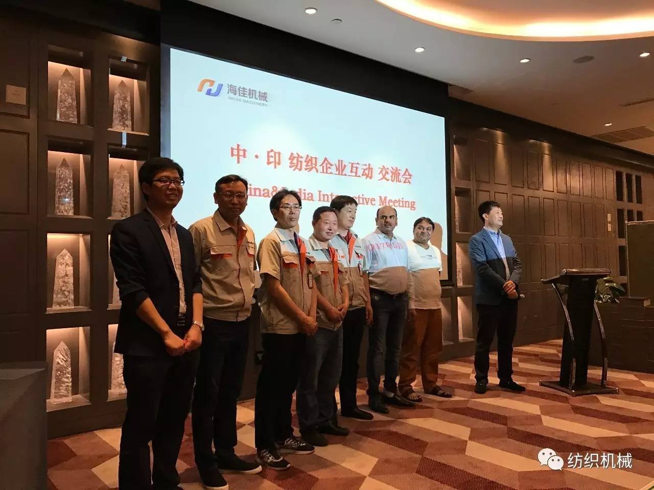 其實(shí)他們?yōu)槠谖逄斓目疾旎顒幼蛲砭鸵验_始。在昨晚舉行的“中印紡織企業(yè)互動交流會”上,中國長絲織造協(xié)會副會長廖夢虎簡單介紹了長絲協(xié)會及國內(nèi)長絲織造行業(yè)的概況,并對海佳為行業(yè)發(fā)展做出的貢獻(xiàn)表示充分的肯定。